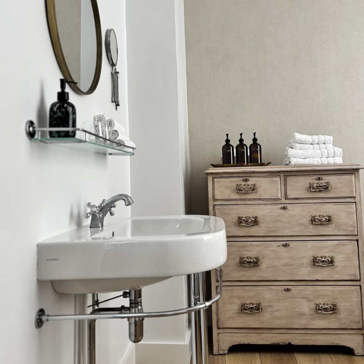 Onze Suite ademt de charme van het historische herenhuis waarin ze zich bevindt. Met originele houten vloeren en een ruimtelijke indeling is dit een kamer waar je meteen tot rust komt. De elegante inrichting combineert warme tinten, natuurlijke materialen en stijlvolle accenten.