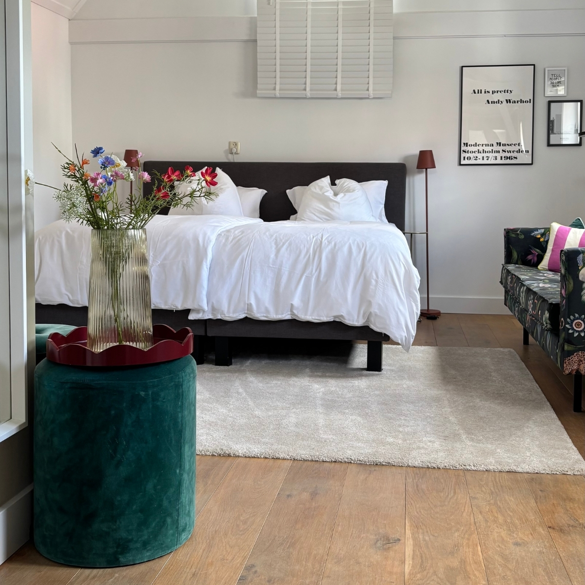 Hier logeer je in alle rust, met je eigen kitchenette, fijne eethoek, een gezellig zitje én een comfortabel kingsize bed. Het is een ideale plek voor een langer verblijf, een werktrip of gewoon een stijlvol nachtje weg.